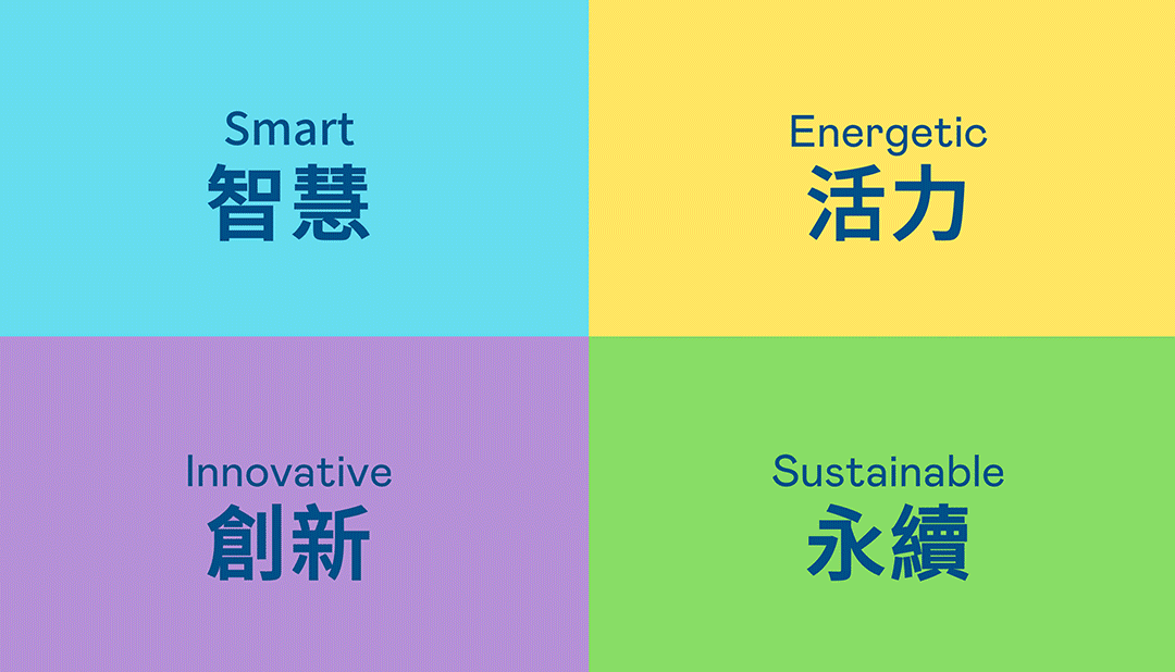 | 從穩重、信賴的江南藍開創新色彩,注入象徵智慧藍、活力黃、創新紫、永續綠的品牌色及動態多變的幾何圖形,呼應不設限的「Possibilities」精神,代表多元的專業技術及領域,在碰撞中相互觸動、融合、延伸,持續激盪出更多新的可能性。 |